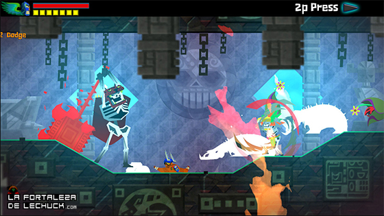 Técnicamente el juego es perfecto para el tipo de juego que es, con muy buenas y variadas animaciones, un scroll suave, sprites limpios y detallados… bueno en todos los aspectos que un juego de 2D nos pueda brindar. Todo adornado, además, con un apartado artístico de excepción, donde el cómic y el folklore mexicano queda totalmente retratado tal y como todos lo tenemos en nuestras mentes. Punto y a parte a los niveles, perfectamente diseñados y ambientados de forma variada en bosques, cuevas, picos nevados, desiertos…