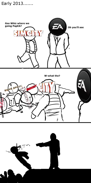 EA, bonicos míos, ¿no os dais cuenta que el DRM (Digital Rights Management) no es la solución? Jugadores, sabéis que gastaros 60€ o más en juegos como este contribuye a que sigan riéndose de vosotros? Pues con esta ínfima reflexión me retiro a jugar al SimCity 2000, ea! digo… hale!. ¡Hasta la semana que viene!