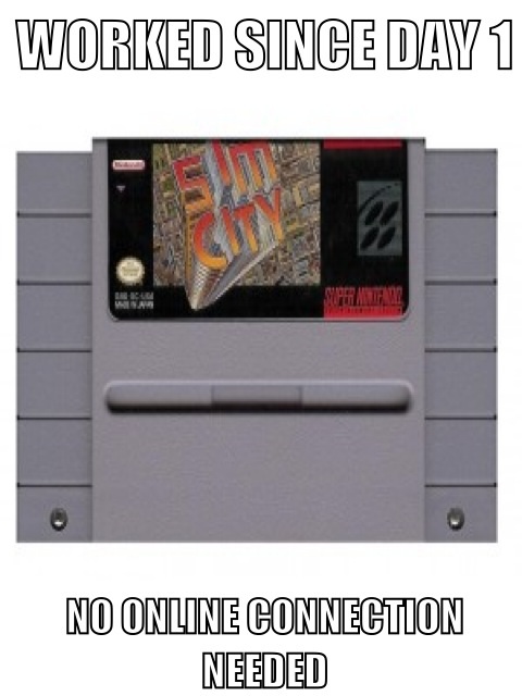 EA, bonicos míos, ¿no os dais cuenta que el DRM (Digital Rights Management) no es la solución? Jugadores, sabéis que gastaros 60€ o más en juegos como este contribuye a que sigan riéndose de vosotros? Pues con esta ínfima reflexión me retiro a jugar al SimCity 2000, ea! digo… hale!. ¡Hasta la semana que viene!
