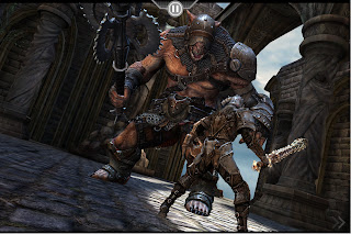 | Infinity Blade, un juego atractivo que aparenta profundidad pero que se juega pasando un solo dedo por la pantalla y se avanza «on rails». |