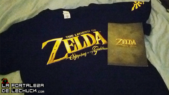 He querido ser «tiquismiquis» para darle un poco de chicha al asunto y no decir que ha sido absolutamente maravilloso. Bueno, realmente lo ha sido, y os aseguro que estuve la mayor parte del concierto temblando de la emoción y absolutamente todo el concierto me ha mantenido en constante flipe pese a haber dormido solo 1 hora la noche anterior. A lo mejor, según los temas que digo que faltaron, habrían hecho falta tres horas de concierto para abarcarlos, pero como digo, para mi gusto habría descartado algunos temas por el bien de otros. En todo caso, es una auténtica pasada poder «vivir» la música de tu saga favorita, sea cual sea, y doy las gracias a Nintendo por darme la oportunidad, como ya tuvo Elaine con el Distant Worlds de Final Fantasyhace unos meses. Yo me llevo un grandísimo recuerdo (Terminando el concierto con Majora’s Mask, como no iba a hacerlo) además de esta preciosa camiseta.