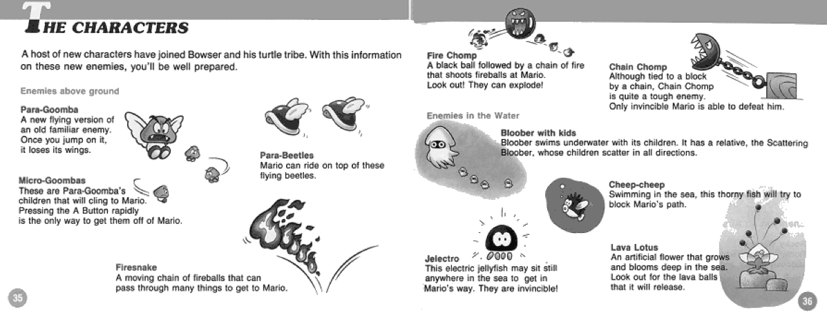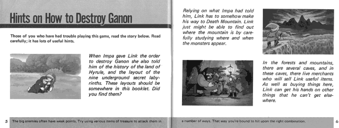 Primeramente fueron sin color y es que éste fue apareciendo en los manuales de los juegos de Super Nintendo. A pesar de utilizar escala de grises, los manuales de los juegos de NES eran atractivos ya que nos contaban el inicio de la historia que íbamos a vivir y nos daban consejos más o menos útiles.