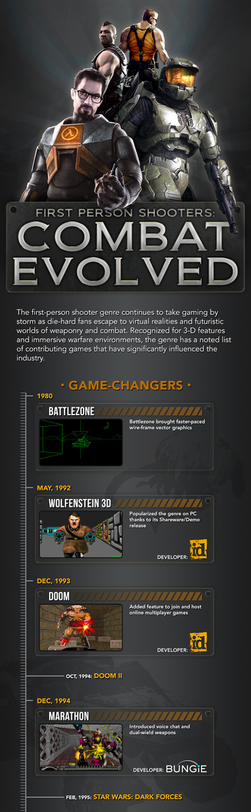 Uno de los géneros con más seguidores es sin duda los FPS (First Person Shooter, o juegos de tiros en primera persona), más conocido a día de hoy simplemente como Shooter. Los lanzamientos más importantes últimamente, y que más ventas cosechan, pertenecen a este género, y un claro ejemplo son los infinitos títulos de la serie Call of Duty o Halo, aunque es muy cuestionable su calidad en comparación con los clásicos.