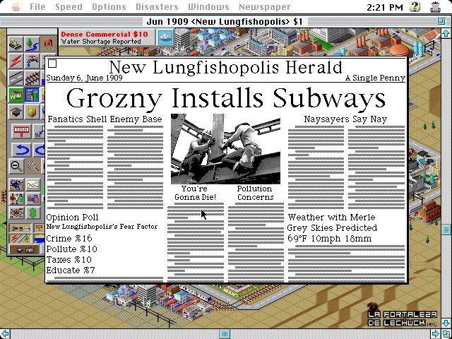 Las horas de diversión que me proporcionó este juego son incuantificables, era lo más original que había visto hasta la fecha, solo comparable con los juegos de Bullfrog. A menudo tomaba capturas de mi ciudad y enseñaba mis creaciones de terrenos y la pasta que ganaba a mis familiares y amigos!