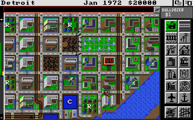 Disponíamos de edificios prediseñados como los diferentes tipos de factorias y edificios de servicios (bomberos, policía…) o de ocio (estadios, parques…). Y las zonas comerciales, industriales y residenciales, que las podíamos colocar a nuestro antojo o según la demanda. Tambien teníamos que gestionar impuestos y velar por la calidad de vida de los ciudadanos, aunque existía la posibilidad de destruirlo todo con los «desastres«, o hacer todo lo posible por evitarlos. La buena acogida hizo que se lanzara para casi todos los ordenadores y consolas de esa época.
