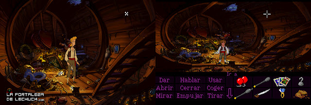 Como véis en el video que ha preparado, ya tiene el proyecto bastante adelantado, y la verdad es que el rediseño de los personajes está muy bien hecho, sobretodo retornando a los personajes principales a su diseño original. Además, todos los escenarios los ha achatado y pixelizado para volver añadir los típicos menús de las aventuras de LucasArts, una auténtica reliquia de menú que muchos echamos de menos en las nuevas aventuras gráficas.