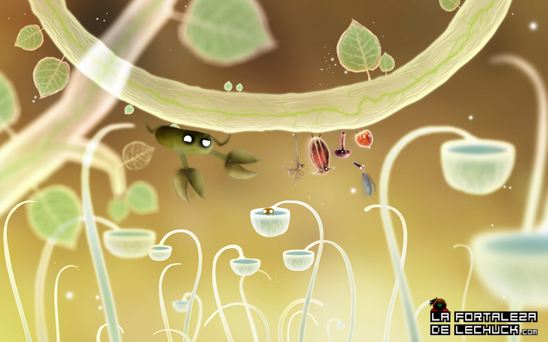 Para empezar es mucho más accesible que Machinarium. Si recordamos este, debíamos acercarnos a los objetos para poder interactuar con ellos, cosa que impacientaba a los jugadores más clásicos. Esto no pasa con Botanicula, que permite interactuar con todo el escenario sin la necesidad de que los bichitos hagan movimiento alguno. No me refiero a que ellos no interactuen con el escenario, cuidado, más bien me refiero a que a parte de manejarlos también seremos como «el alma» del bosque, pudiendo interactuar también con otros bichejos y plantas. Esto, además de hacerlo más accesible, también lo hace más divertido.